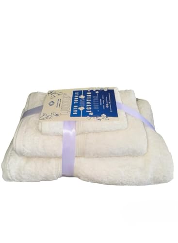 generic - طقم مناشف حمام من جاكاردينا اوف وايت (3 مناشف فاخرة: 30 × 30 سم و50 × 100 سم و70 × 140 سم) 100% قطن مصري