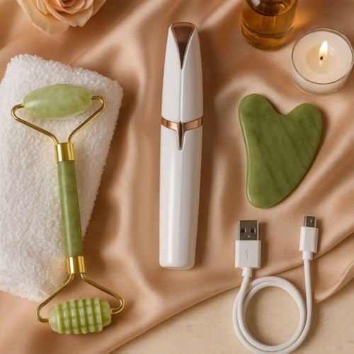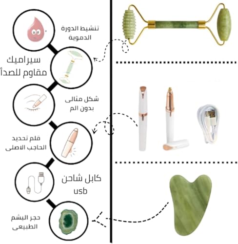 - مجموعة العناية بالجمال 3 في 1 - استمتع بروتين كامل للعناية الذاتية مع أسطوانة اليشم وحجر جوا شا وتشذيب الحواجب، مصممة لإنعاش وجهك واسترخاء العضلات وتبسيط طقوس الجمال اليومية.