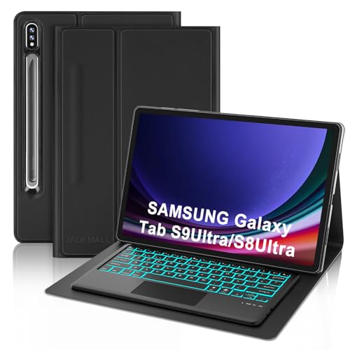 JADEMALL - حافظة كيبورد لجهاز سامسونج جالاكسي تاب S10 الترا 14.6 بوصة 2024 بلوتوث لاسلكي بإضاءة خلفية مع لوحة تتبع رفيعة لسامسونج S10-S9-S8 14.6 أسود