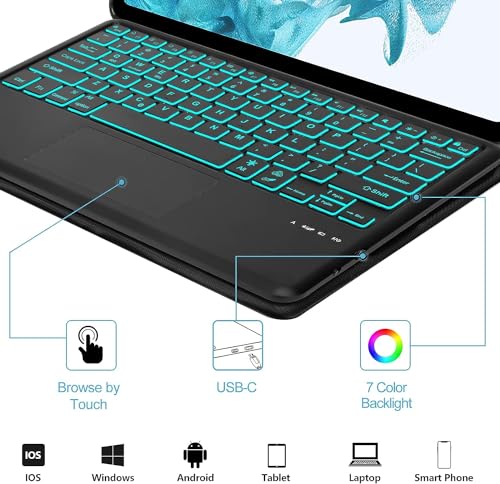 - 【كيبورد قابلة للفصل مغناطيسيًا】تحتوي لوحة المفاتيح ذات الإضاءة الخلفية على 7 ألوان إضاءة خلفية قابلة للتبديل، و3 مستويات من السطوع، مما يجعل الكتابة أكثر متعة. هذه الكيبورد اللاسلكية متصلة مغناطيسيًا بحافظة متينة ويمكن إزالتها بسهولة إذا لم تكن هناك حاجة إليها. لوحة مفاتيح بلوتوث قابلة للفصل مع حافظة مغناطيسية تحول جهاز سامسونج جالكسي تاب اس 10 الترا الخاص بك إلى لابتوب في أقل من ثوانٍ، مما يوفر راحة أكبر لعملك.