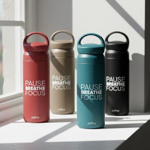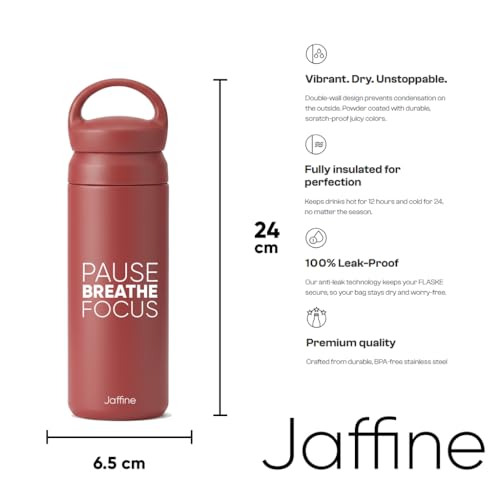 Jaffine - زجاجة مياه حرارية من الستانلس ستيل من سلسلة فلو من جافين سعة 500 مل - اصدار مايند - زجاجة مياه معزولة مانعة للتسرب للمشروبات الساخنة والباردة (احمر طوبي)