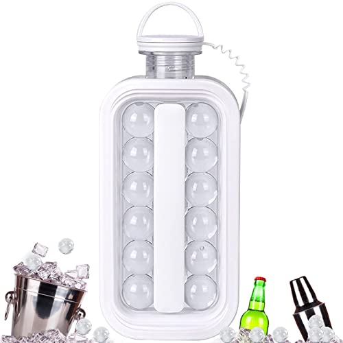 - 【أحدث صانع مكعبات الثلج 2 في 1】 إنها ليست فقط صواني مكعبات الثلج. كما أنها غلاية يمكنك شرب أي مشروبات مباشرة. من السهل صنع 17 كرة ثلج كاملة في كل مرة، مريحة في الاستخدام والتنظيف، مع غطاء زجاجة محكم الغلق لمنع الرائحة.
