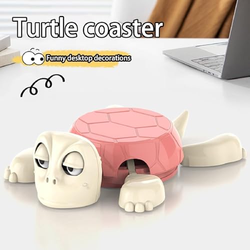Jagney - قاعدة اكواب بطبعة سلحفاة ثلاثية الابعاد من جاجني - تصميم صدفة غريب الاطوار مع تعبير فكاهي | بساط كوب قهوة لطيف، واقي مكتب وهدية مكتبية. (بينك)