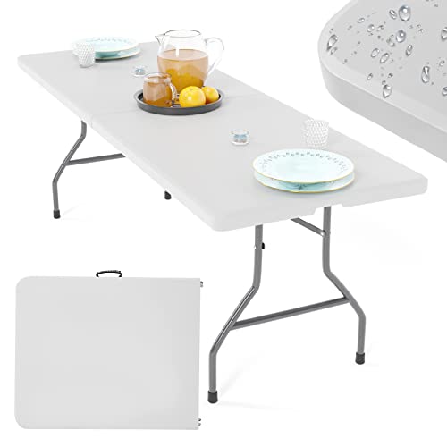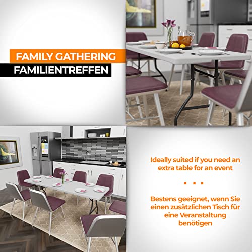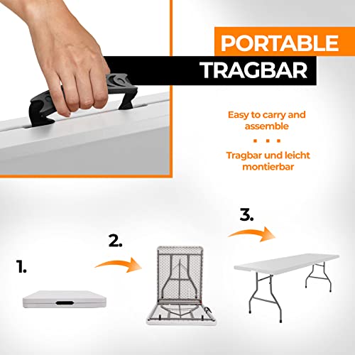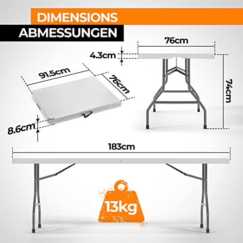 Jago - طاولة قابلة للطي من جاجو® - 6 قدم 183 × 76 سم اطار الستيل اقدام مطاطية مقبض حمل خفيفة الوزن اسود-ابيض - بوفيه شديدة التحمل للشواء وحفلات الحديقة والنزهات وتقديم الطعام ابيض