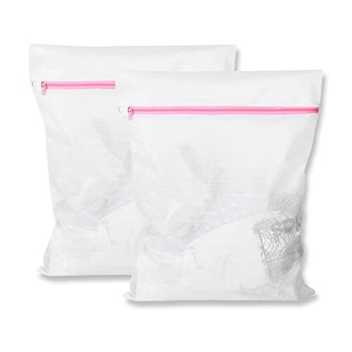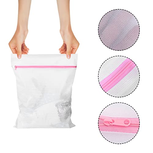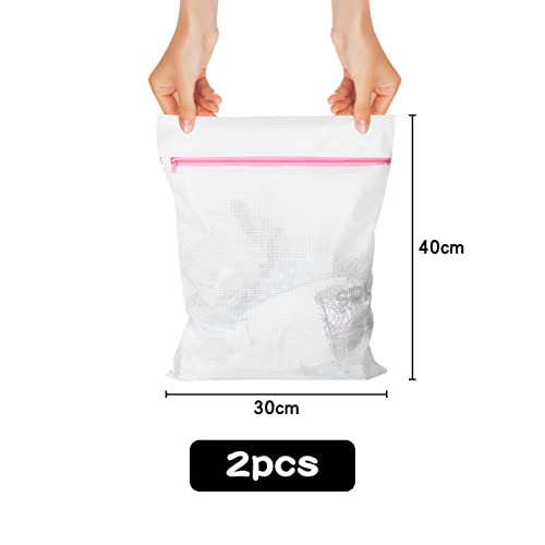 Jagowa - أكياس غسيل شبكية من جاجوا مكونة قطعتين سميكة ومتينة ومضادة للعقد للمنزل والسفر بسوستة للغسالات 30 × 40 سم بلاستيك أبيض