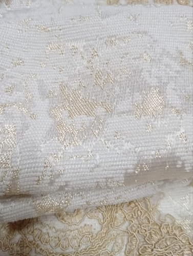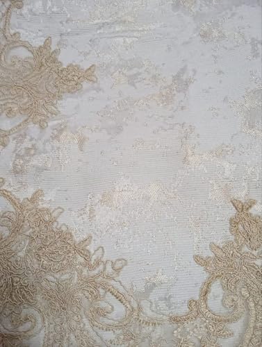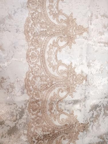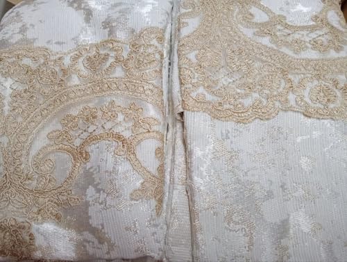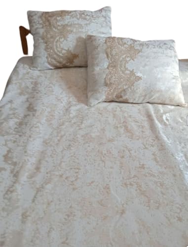 Generic - مفرش سرير جكار اف ويت مع ذهبى مرصع بالجبير البيج