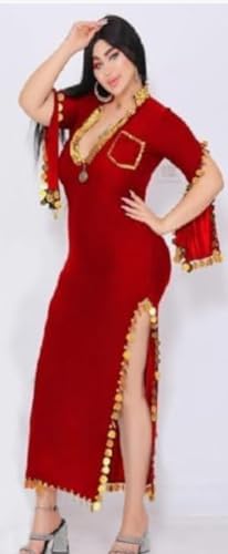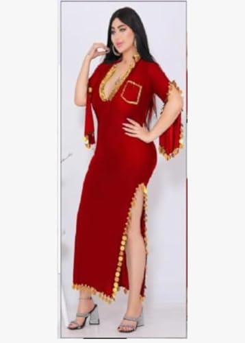Generic - جلابيه رقص شرقي قطعه لون احمر في ذهبي