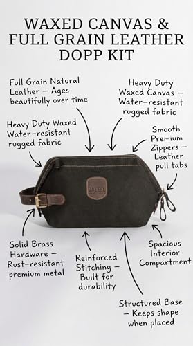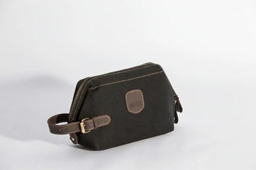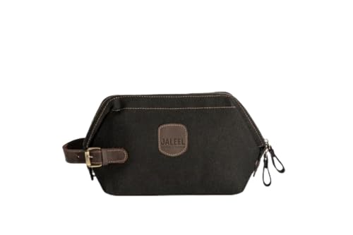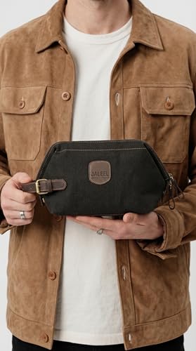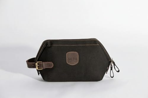 JALEEL - جليل حقيبة تنظيم أدوات شخصية، قماش قطن طبيعي 100% مع جلد بقري أصلي، حقيبة سفر عملية بتقسيمات داخلية ومقبض جلدي