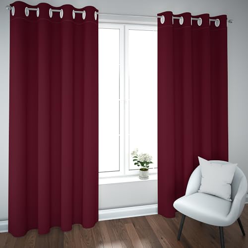 Generic - ستائر جلسة باللون الاحمر الداكن مع حلقات للتثبيت لغرفة المعيشة وغرفة النوم قطعة واحدة 140 سم عرضًا × 240 ارتفاعًا من الكتان الصناعي سادة