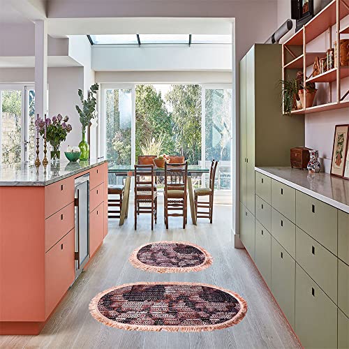 Generic - طقم سجاد مطبخ من جلسة مكون 2 قطعة - سجادات ارضية مبطنة مضادة للاجهاد ومضادة للماء عند الوقوف بالقرب الحوض الحمام المطابخ المكتب غرفة الغسيل مريحة للانزلاق متعدد الألوان أكريليك مقاس واحد
