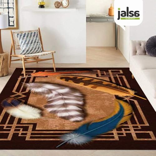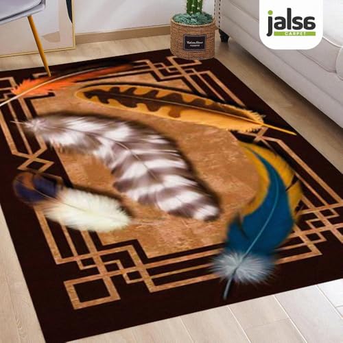 Jalsa - سجادة بتصميم ريش بنمط ارت ديكو من جالسا، 1.8 × 2.8 م، بني وذهبي