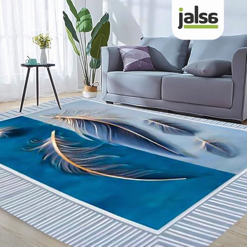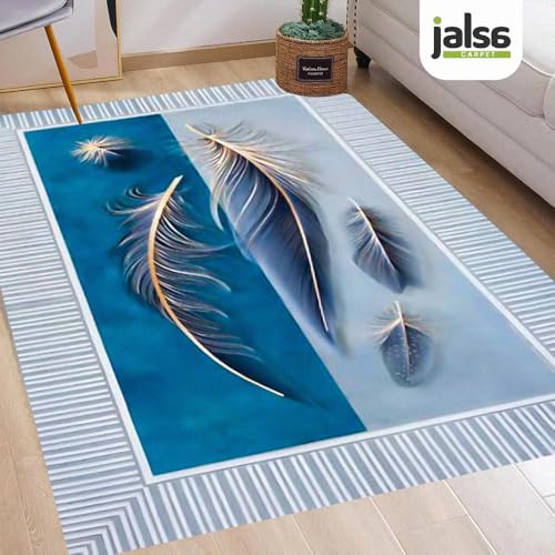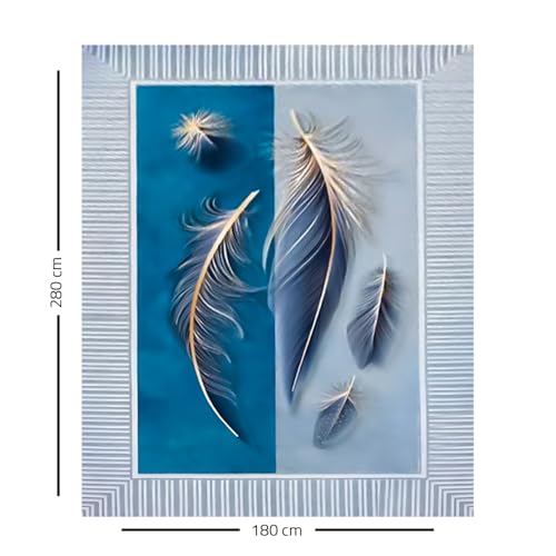 Jalsa - سجادة بتصميم ريش عصري من جلسة، أزرق ورمادي، 1.8 × 2.8 م