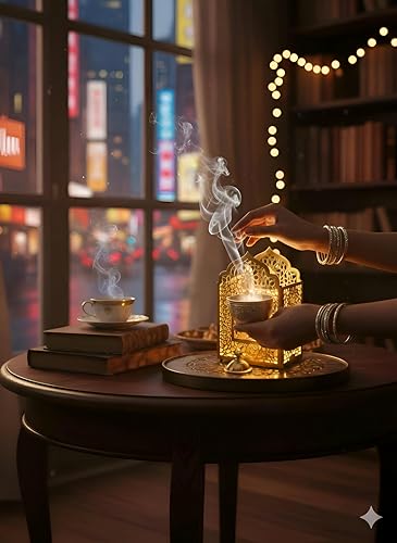 - حامل البخور المعدني المطلي بالذهب يطلق العطر بالتساوي أثناء استخدامه كقطعة زخرفية.