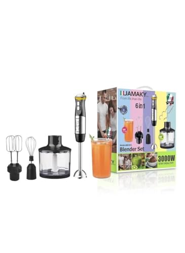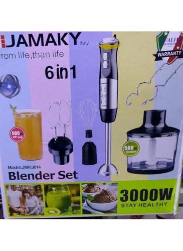 Generic - خلاط يدوي جاماكي 6 في 1 بقوة 3000 واط من الفولاذ المقاوم للصدأ مع سرعات ومتعدد الوظائف - ضمان عام - jmk 3014- ايطالي