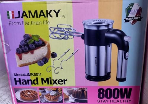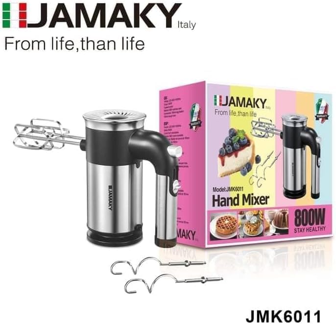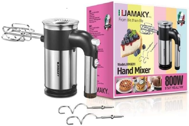 Generic - مضرب بيض كهربائي جاماكي 800 وات - 5 سرعات | 4 أسلحة خفق | ستانلس ستيل