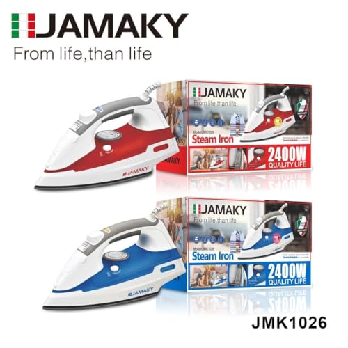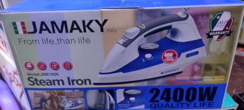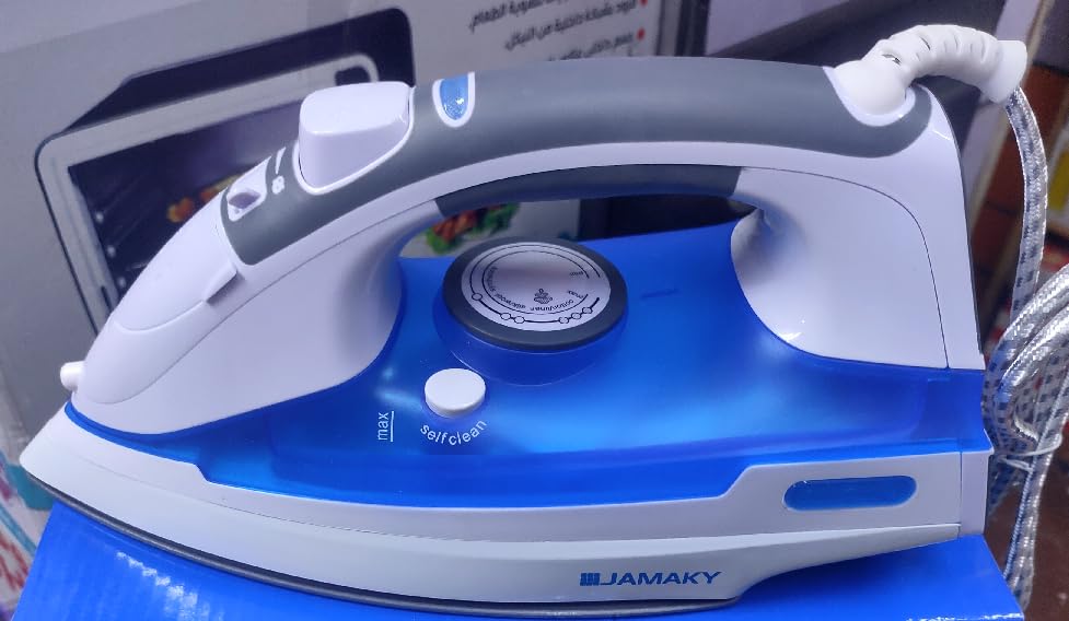 - مكواة بخار للملابس من جاماكى بقدرة 2400 وات قاعدة مطلية من السيراميك لمنع الالتصاق مع خاصية التنظيف الذاتى -jmk1026