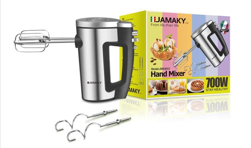 Generic - خلاط يدوي للكيك من جاماكى بقدرة 700 وات الة خفق البيض كهربائي لخلط الكيك الخفق اليدوي لصنع مع 5سرعات و 4 اسلحة ستانيلس ستيل للخفق -jmk6013