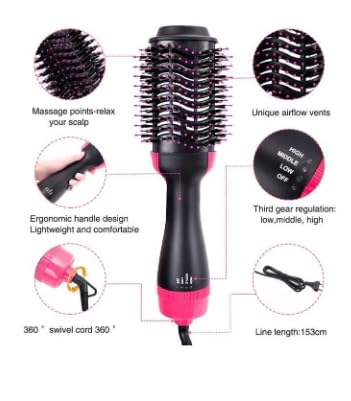 - طاقة 1200 وات: توفر طاقة كافية لتجفيف الشعر بسرعة وسهولة حتى للشعر الكثيف والطويل. تصميم دوار: تتميز الفرشاة بتصميم يساعد على فك تشابك الشعر وتوزيع الحرارة بالتساوي، مما يمنحك تسريحة ناعمة وخالية من التجعد لا تُسبب بهتان لون الشعر من المنتصف إلى الأطراف.لعمل تجعيدات، ابدئي بتجفيف شعركِ من الجذور إلى الأطراف، ثم لفي الخصلات حول الفرشاة الدوارة. لعمل قصة بوب، ابدئي بتجفيف شعركِ من الجذور إلى الأطراف، مع استخدام الفرشاة الدوارة لتمليس الشعر. في نهاية التسريحة، استخدمي الهواء البارد لتثبيت التسريحة. شعيرات متعددة المستويات: تتميز الفرشاة بشعيرات متعددة المستويات تعمل على فك تشابك الشعر بلطف وتحسين كثافته.