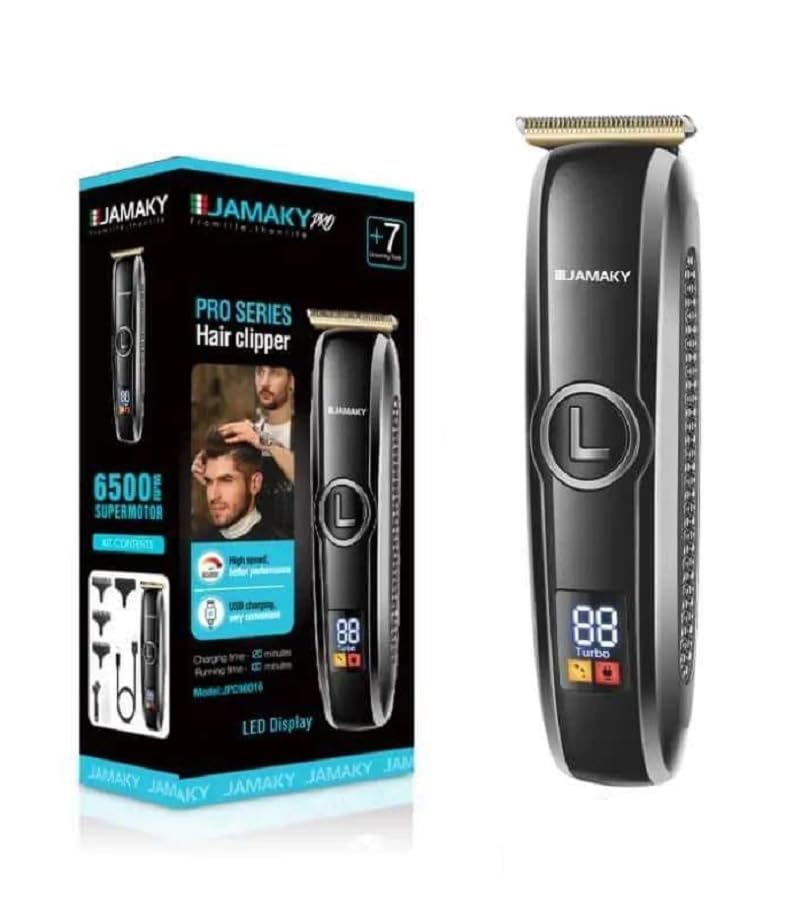 Generic - ماكينة حلاقة احترافية للرجال من جاماكى مع شاشة LED وقت التشغيل 100 دقيقة وبطارية 800 مللى قابلة لاعادة الشحن مزودة بوصلة شحن و 4امشاط توجيه لشحن البطارية - jmk 90016
