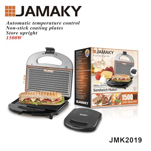 Generic - صانعة الساندويتش من جاماكي موديل جي ام كي2019، بتصميم عصري، مصنوعة من الفولاذ المقاوم للصدأ، لون ستانلس ستيل، قدرة 1500 واط، مع طلاء غير لاصق ولمسة باردة