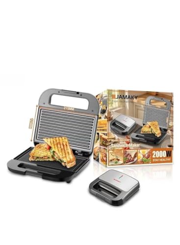 Generic - صانعة الساندويتشات، من جاماكي 2000 وات، ألواح ألومنيوم غير لاصقة، وش استنلس عازل الحرارة تحكم تلقائي في درجة الحرارة، موديل JMK2030