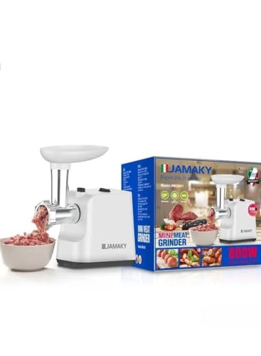 Generic - مفرمة لحوم كهربائية ايطاليا JMK8001 من جاماكي، طاقة قصوى 800 واط، مفرمة لحوم كهربائية متعددة الوظائف 3 في 1، حشو سجق، 1 شفرة تقطيع، 3 الواح طحن وملحقات الكبة.