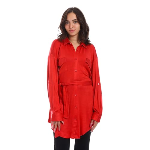 JAMILA - قميص قطن بصف أزرار كامل مع حزام للنساء من جميلة
