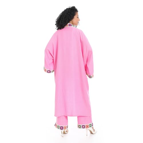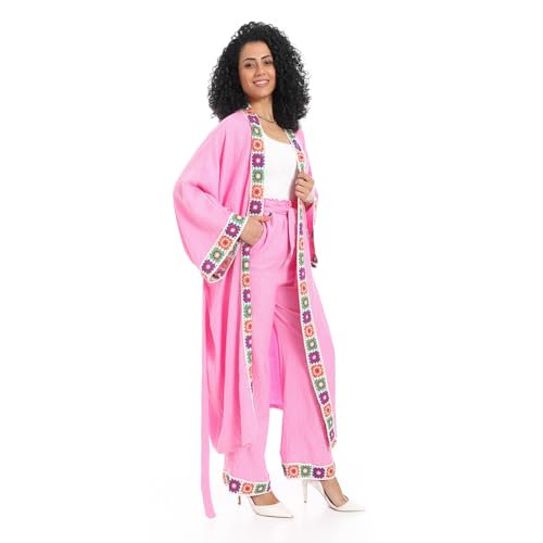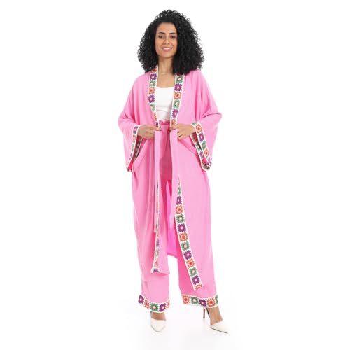 JAMILA - JAMILA Womens Stitched Edges Slip On Kimono And Pants Set - Rose Women's plain kimono suit