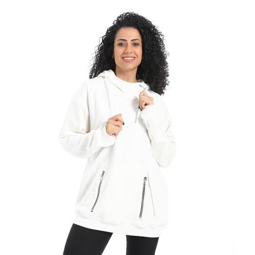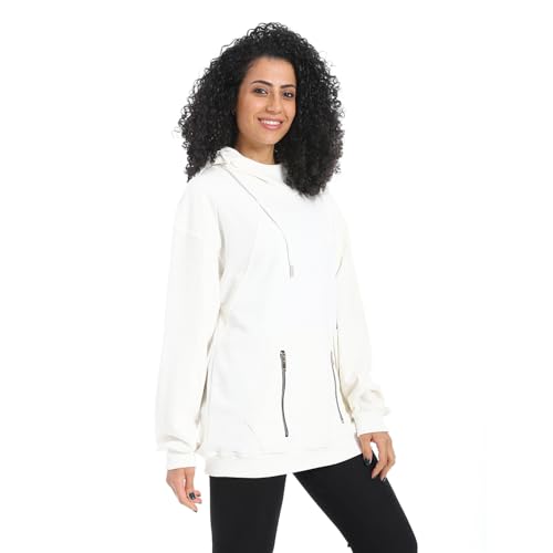 JAMILA - JAMILA Womens Summer Melton Women's Hooded T-Shirt with Zipper Pocket - white Summer Melton Women's Hooded T-Shirt with Zipper Pocket