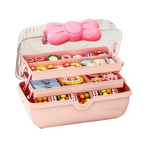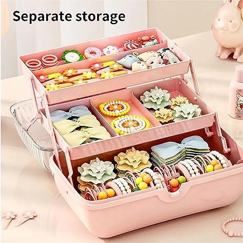 GKWW - منظم اكسسوارات شعر للأطفال البنات لطيف من 3 طبقات، صندوق تخزين مجوهرات، حامل اكسسوارات شعر بلاستيكي زهري، 27 سم طولًا × 14 سم عرضًا × 27 سم
