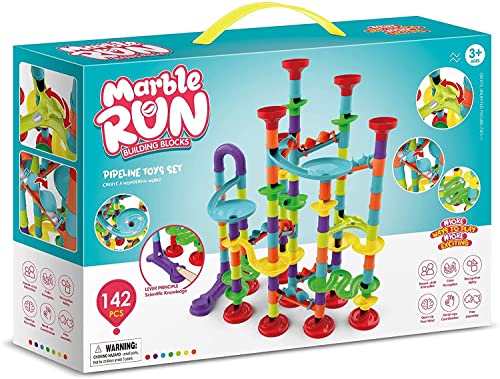 لعبة ماربل رن مجموعة مكعبات بناء زجاجية، 142 قطعة للأطفال من سن 4-8 سنوات، ألعاب متاهة تعليمية، لعبة سباق تعليمية، هدايا عيد ميلاد (مقاس L) من جامري