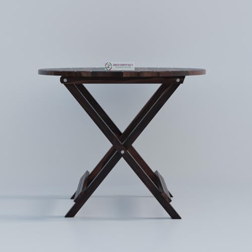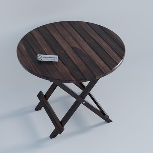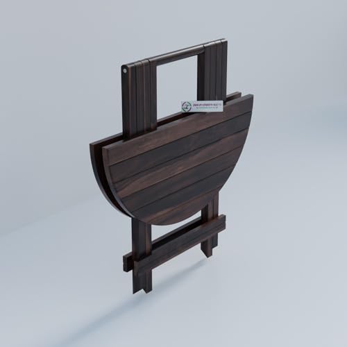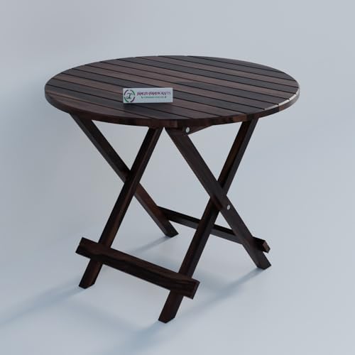 Jangid Handicraft - طاولة قهوة قابلة للطي / قابلة للطي للحديقة والاماكن الخارجية والشرفة، مستديرة من خشب شيشام الصلب بلمسة نهائية من خشب الجوز من جانجيد