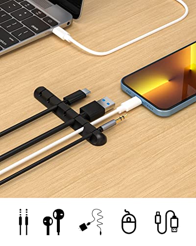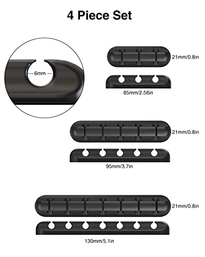 JANREAY - مشابك حامل كابلات من جانري، 4 عبوات متعددة الأغراض لتنظيم الكابلات للمكتب، كابل الصوت، سلك الطاقة، كابل شحن USB (أسود)