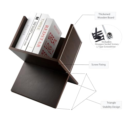 Jansfuren - رف كتب، منظم رفوف كتب صغير حديث للكتب وCD والأفلام والمجلات، رف تخزين كتب من الخشب لغرفة النوم وغرفة المعيشة والمكتب والشرفة من جانزفورن، لون بني