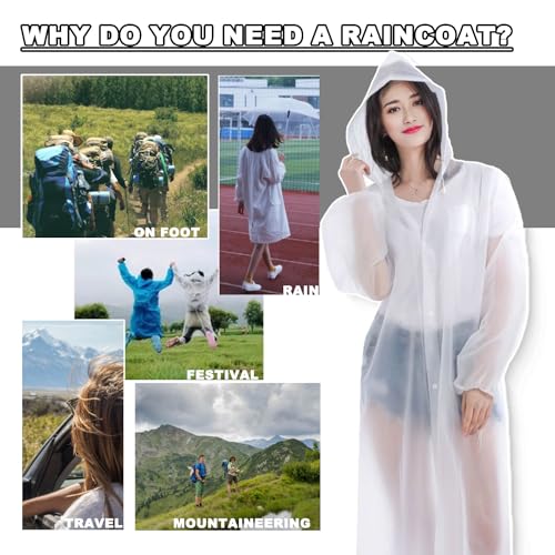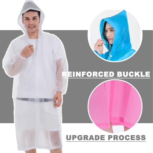 JANYUEPAI - Raincoat Rain Poncho, Reusable Clear Raincoat with Hoods and Sleeves, EVA Waterproof Portable Rainwear for Adult Teens Travel Festival Theme Parks, White