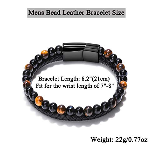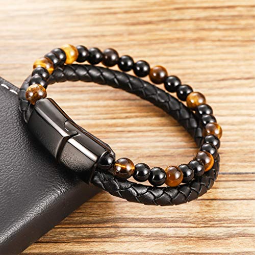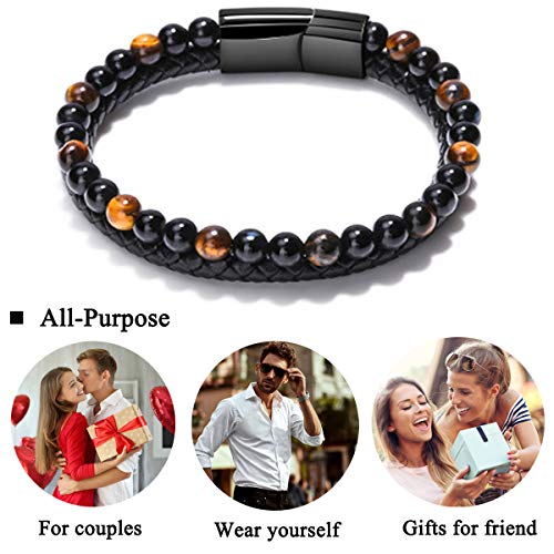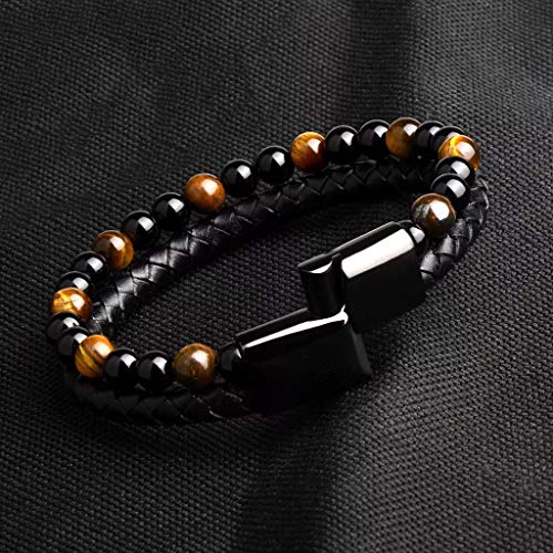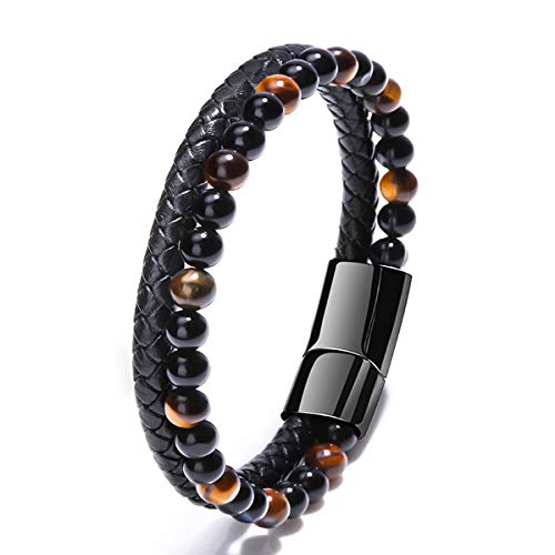 JAOYU - سوار جلد من جاويو مضفر بخرز عين النمر وبمشبك مغناطيسي من ستانلس ستيل منخفض الكربون 316L، مقاس 7-8 بوصة, جلد، للرجال