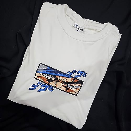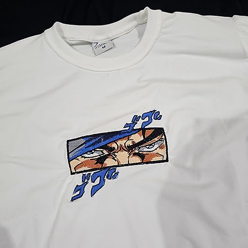 Generic - تي شيرت بقلنسوة مطرز بعين جوتارو كوجو من انيمي ياباني جوجو بيزار ادفنتشر مقاس XL ، هودي ابيض للبالغين من الجنسين