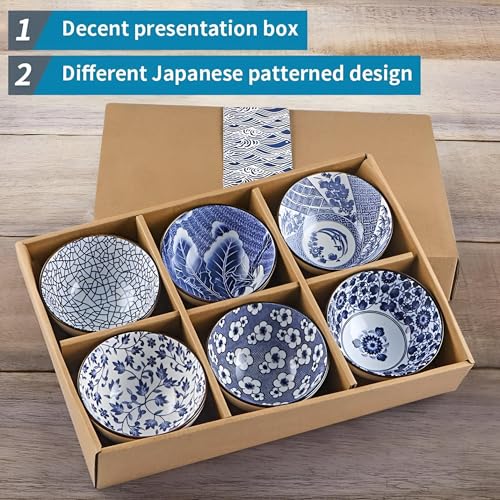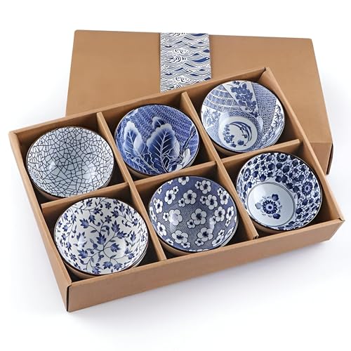 Generic - بولات تقديم يابانية أنيقة من السيراميك مع علبة هدايا، مثالية للأرز والحساء والحلويات والوجبات الخفيفة، خالية من الرصاص والكادميوم، سهلة التنظيف، 300 مل، مجموعة من 6 قطع