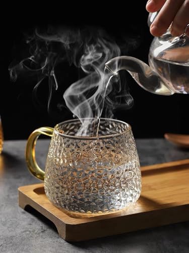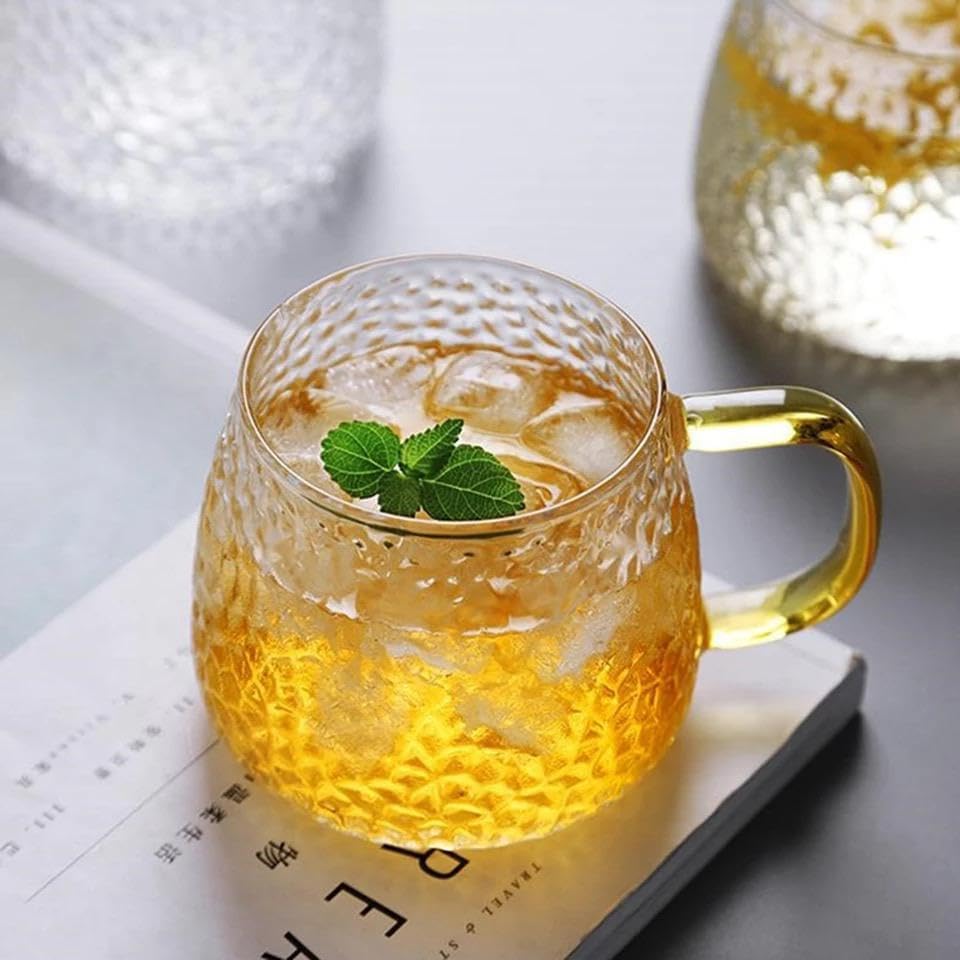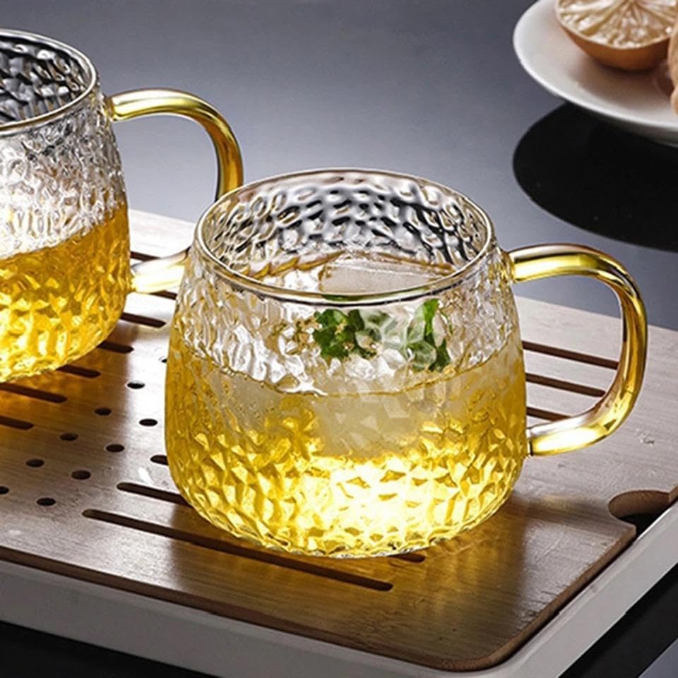 Generic - كوب زجاجي بنمط المطرقة على الطريقة اليابانية شاي مقاوم للحرارة العالية يوضع علي النار مباشره سعة كبيرة - 440 مللي زجاج مكس