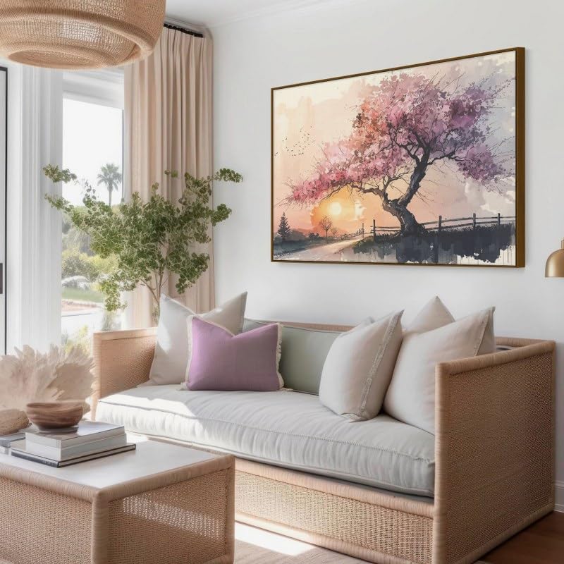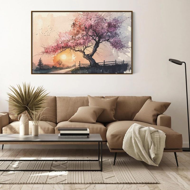 Home Gallery - لوحة فنية جدارية قماشية مطبوعة بإطار منظر طبيعي ياباني، 60 × 40 سم
