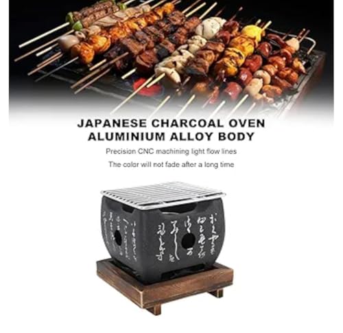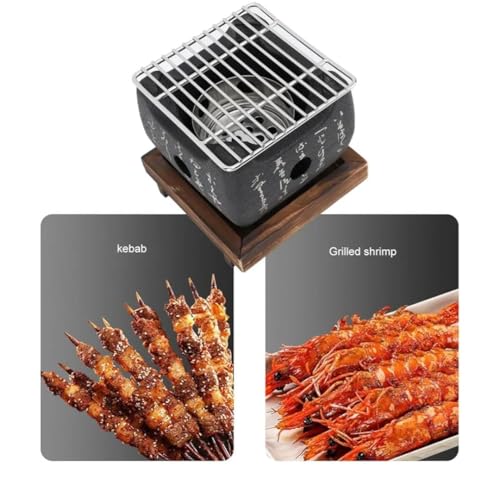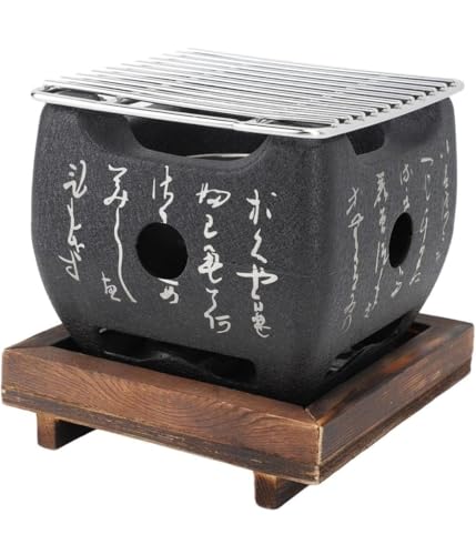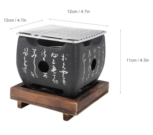 Generic - شواية هيباتشي صغيرة بتصميم ياباني من السيراميك مع قاعدة خشبية وشبكة شواء، 12 × 12 × 11 سم، أسود