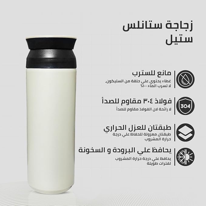 - 🌡️عزل للمشروبات الساخنة والباردة: يحافظ على المشروبات ساخنة لمدة تصل إلى 12 ساعة وباردة لمدة 24 ساعة.