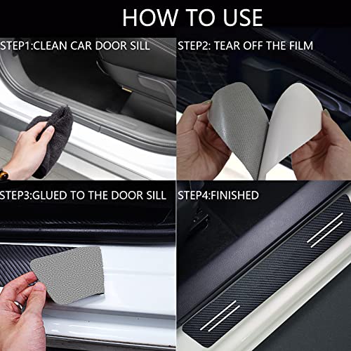 - 【جودة عالية】:غطاء لعتبة باب السيارة مصنوع من جلد الألياف الكربونية بالإضافة إلى مادة لاصقة قوية. مقاوم للماء ومضاد البقع ويسهل تنظيفه من الغبار أو الأوساخ، فقط استخدم الماء وفرشاه أثناء التنظيف وسيصبح سطح الغطاء جديدًا على الفور.