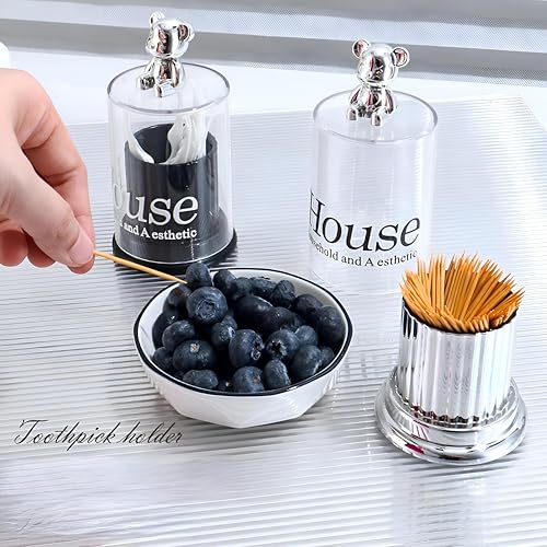 - متعدد الاستخدامات للغاية في الاستخدام، يمكن للبرطمان حمل الكرات القطنية والمسحات القطنية وأعواد الأسنان وأملاح الاستحمام والسدادات القطنية وربطات الشعر وعصي الخيط والعديد من أساسيات الحمام الصغيرة الأخرى. مرونته تجعله حل تخزين الكل في واحد لتلبية الاحتياجات اليومية.