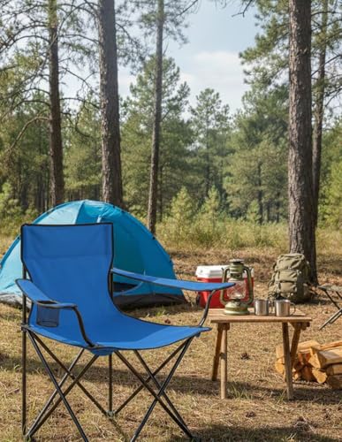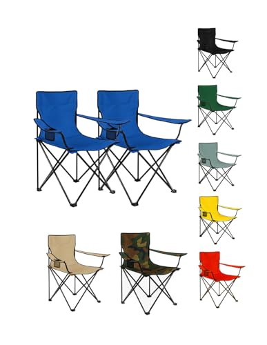 Jardin202 - كرسي تخييم من الستيل قابل للطي مع مساند للذراعين وغطاء بمقابض جاردين 202 - 80 × 50 سم مقاوم للماء - مثالي للاستخدام في الهواء الطلق | عبوة قطعتين أزرق
