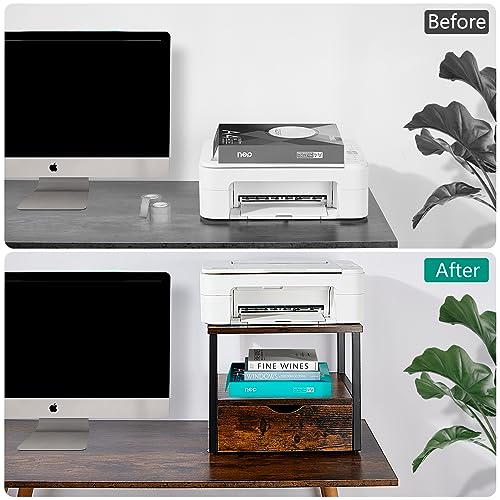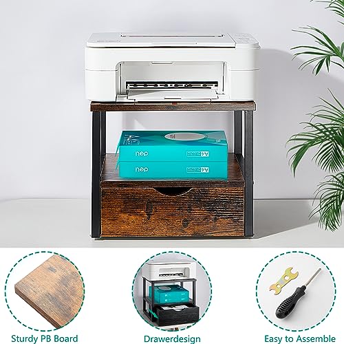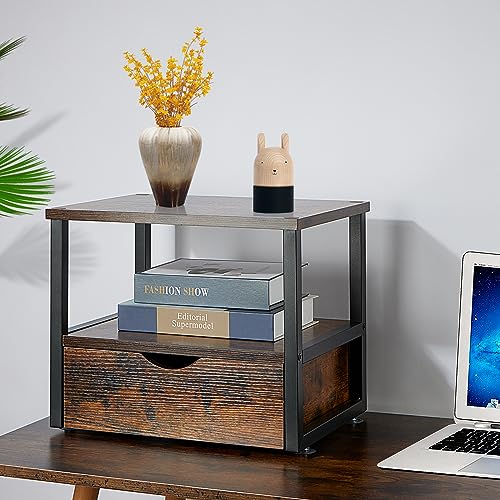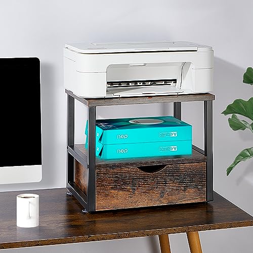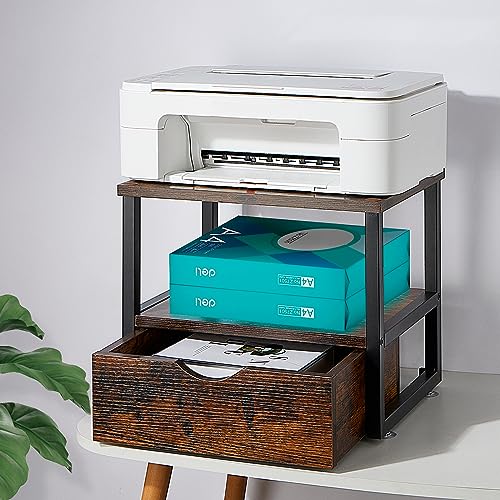 jarrvz - حامل طابعة عصري بطبقتين من جارفز، مكتب طابعة بني ريترو مع درج تخزين منزلق، حامل طابعة دوار لالة الفاكس والماسح الضوئي والمكتب والمنزل، بني رترو
