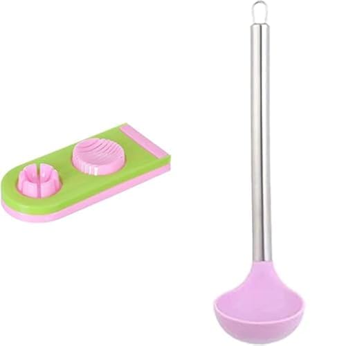 Generic - قطاعة بيض بلاستيك 2 في 1 من ياسين، 9 × 21 سم - الوان مختلفة + ملعقة سباتولا سيليكون، 11 × 8 سم - الوان مختلفة