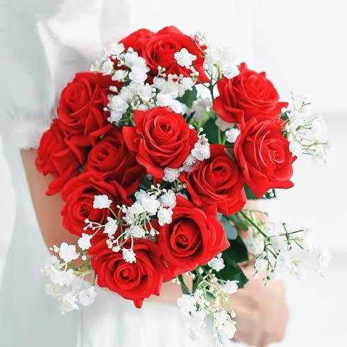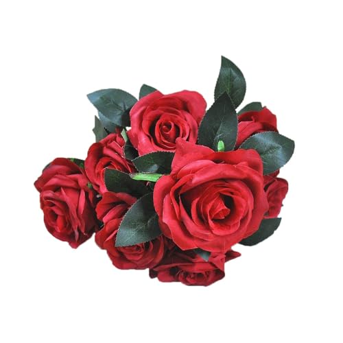 Jasion - باقة ورد صناعي من الحرير مكونة 10 قطع جاسيون، مناسبة للحفلات والمنزل وديكور الزفاف (لون أحمر)