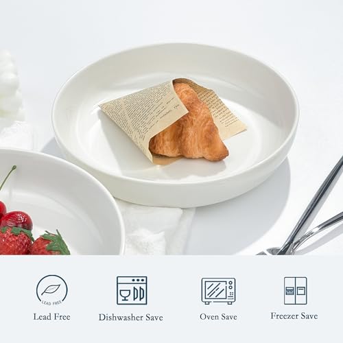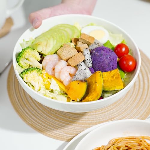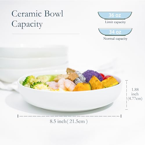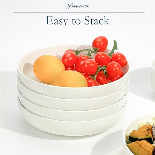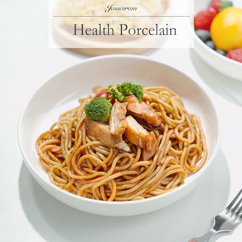 Jassceram - طقم بولات مكرونة أوعية تقديم سلطة بورسلين كبيرة عريضة للمطبخ أطباق مائدة مستديرة آمنة للاستخدام في غسالة الصحون والميكروويف والفرن من جاسسيرام 1.064 لتر 21.5 سم 6 قطع أبيض