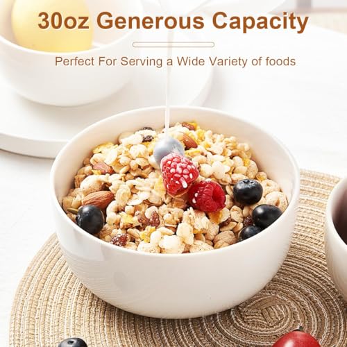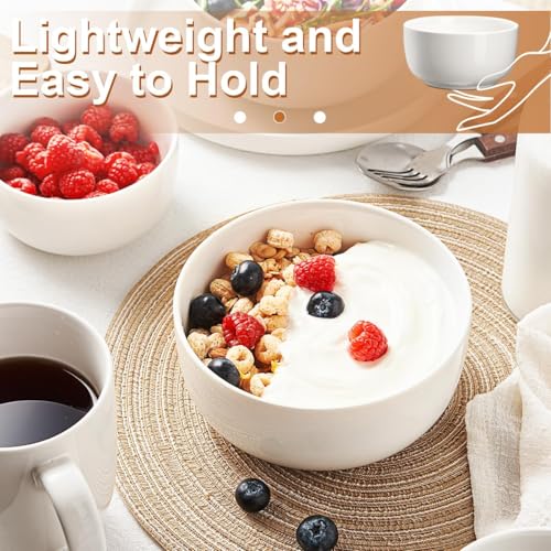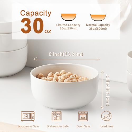 Jassceram - مجموعة اوعية حبوب 800 مل من جاسسيرام مكونة 6 قطع سيراميك كبيرة للحساء ودقيق الشوفان والسلطة والمعكرونة - امنة للاستخدام في غسالة الصحون والميكروويف والفرن انش ابيض